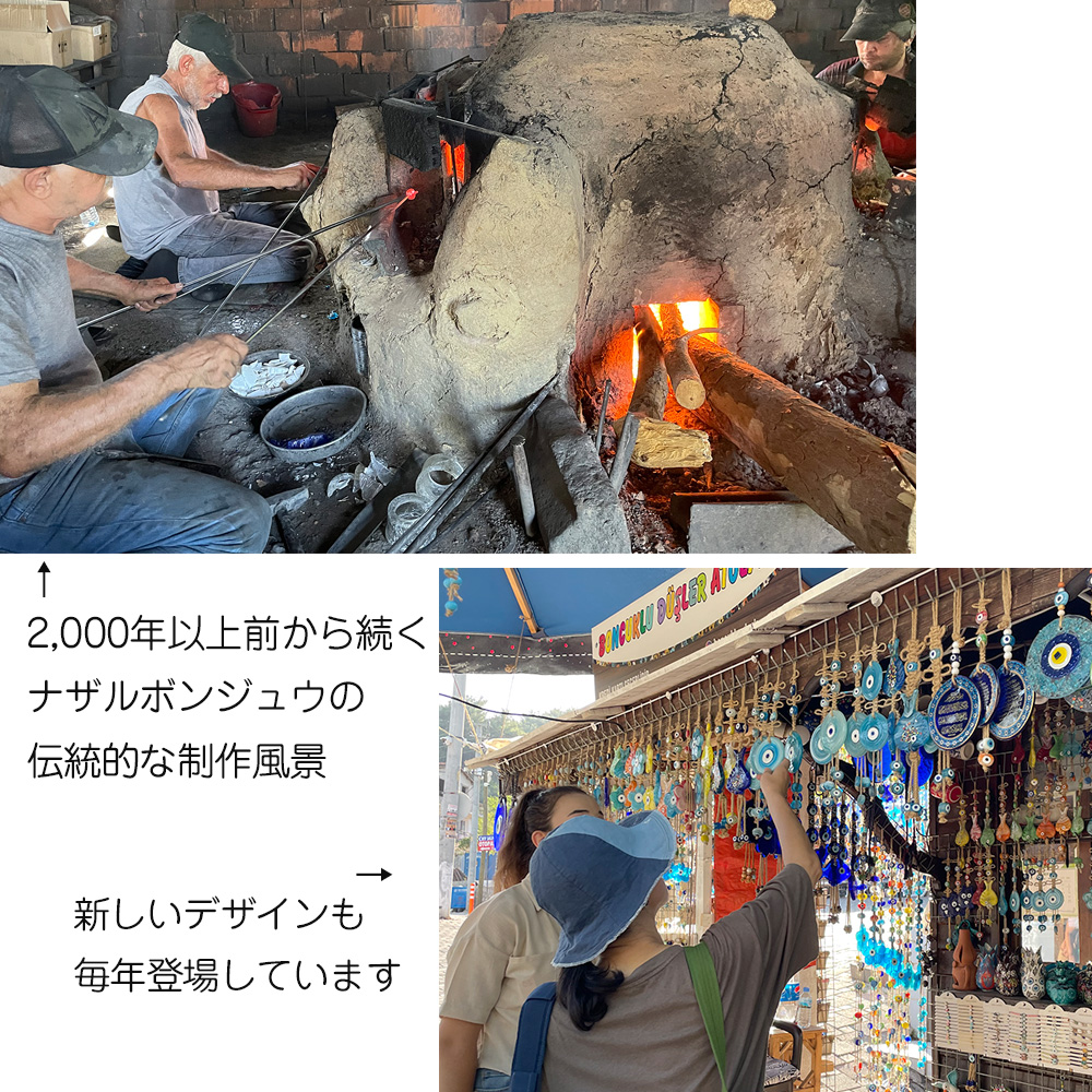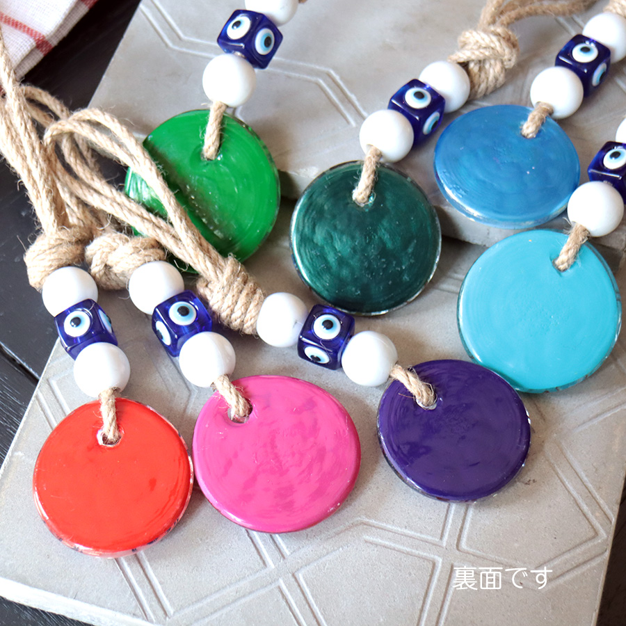フェニキア時代から作られてきた、地中海に伝わる青いめのお守り。他人からの嫉妬の目をはねのける効果があると信じられています。もし、ナザルボンジュウが割れてしまったら、それは自分の代わりにナザルボンジュウが災いを被ってくれたということなのだそうです。