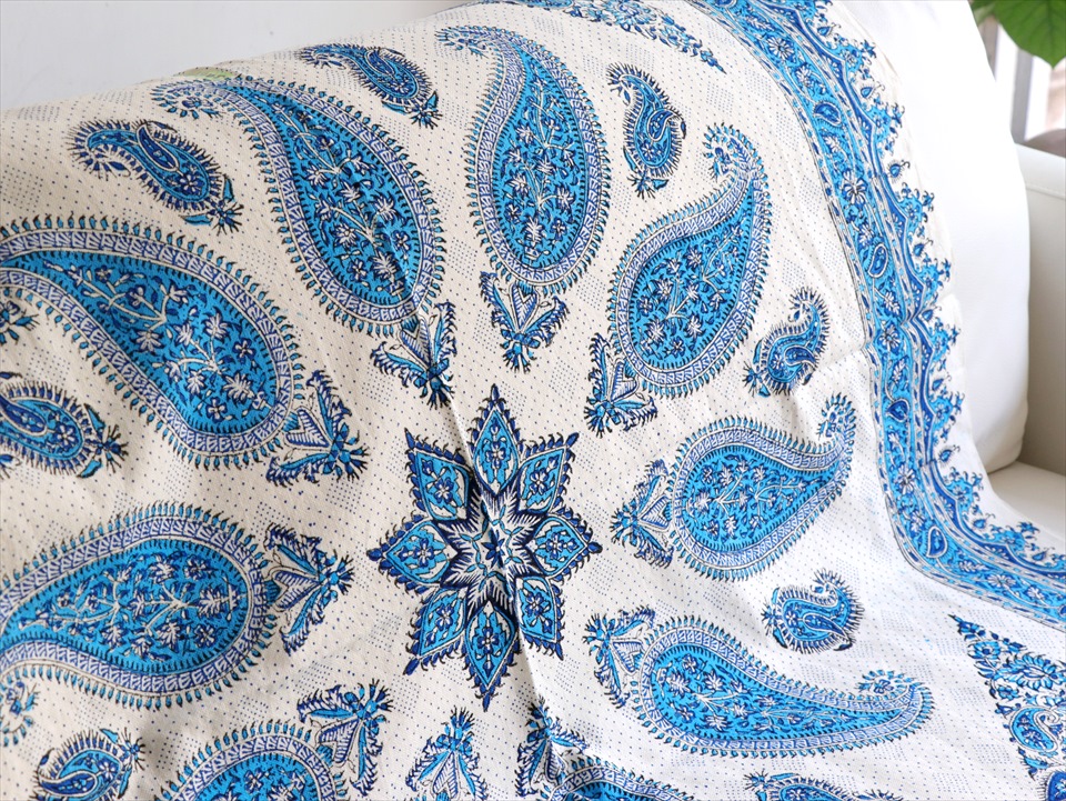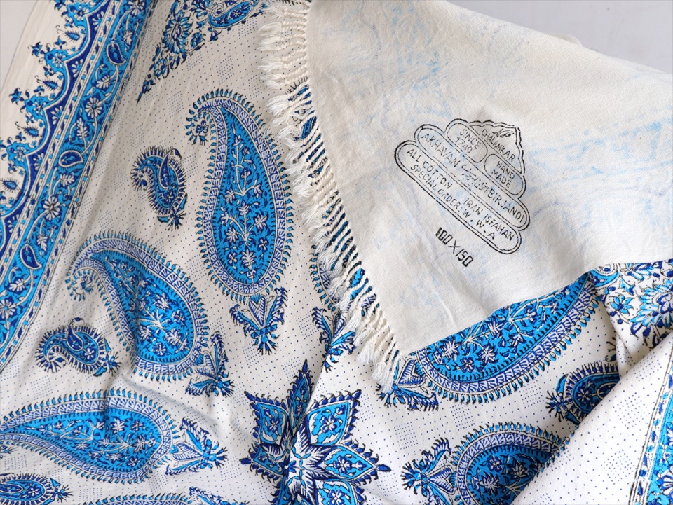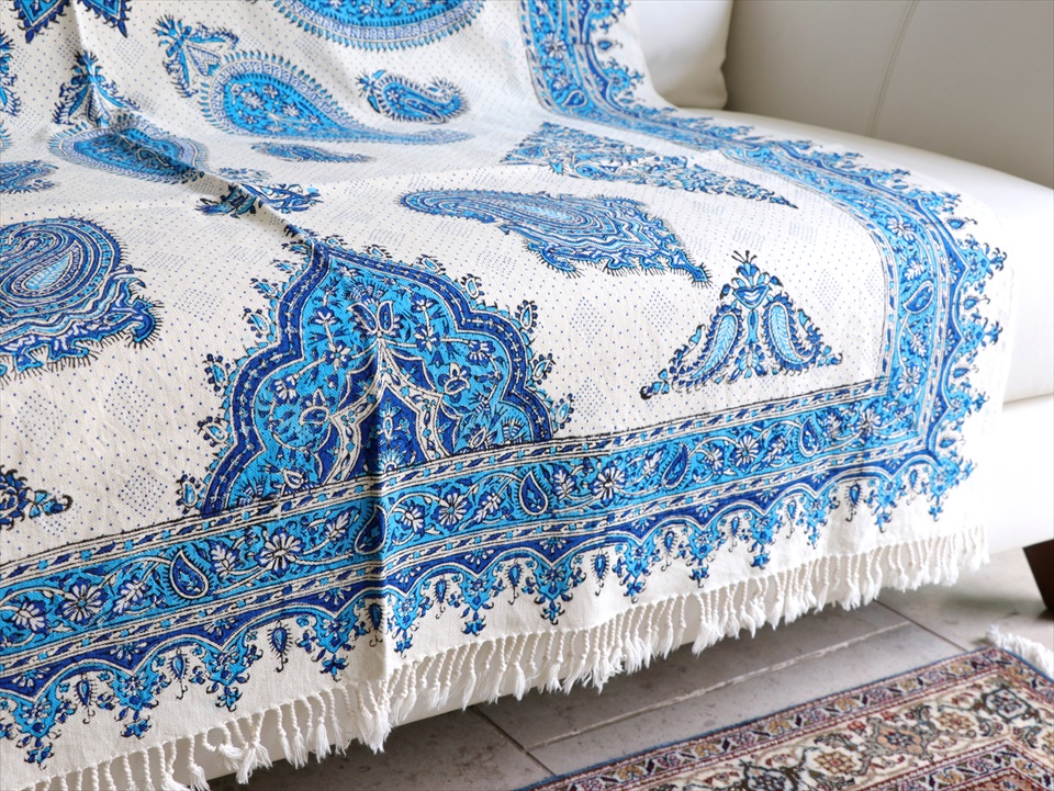 Key:コットン・染色・ブロックプリント・木版・捺染・伝統工芸・インド更紗・ジャワ更紗・ペルシャブルー・ペイズリー・フリークロス・マルチカバー・ベッドスプレッド・ベッドカバー・ソファカバー・カーテン・タペストリー・ファブリック・インテリアファブリック・クラフト・インテリア・ペルシャ・ペルセポリス・イラン・中東・シルクロード・アジアン・エスニック