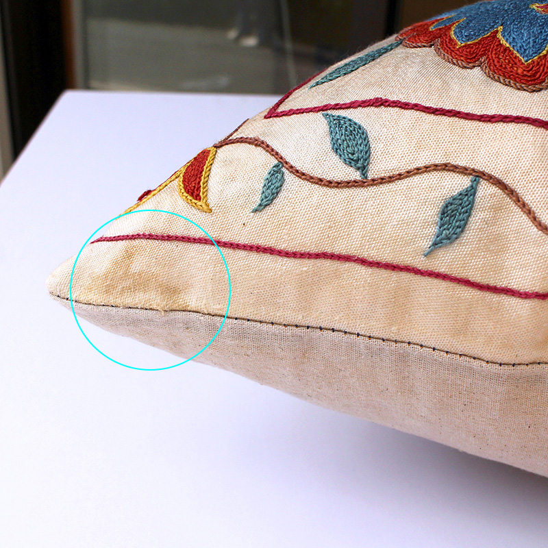 クッションカバー50cm角 ウズベキスタン スザンニ suzani シルクの手刺繍 シミ・ほつれあり OUTLET・難あり