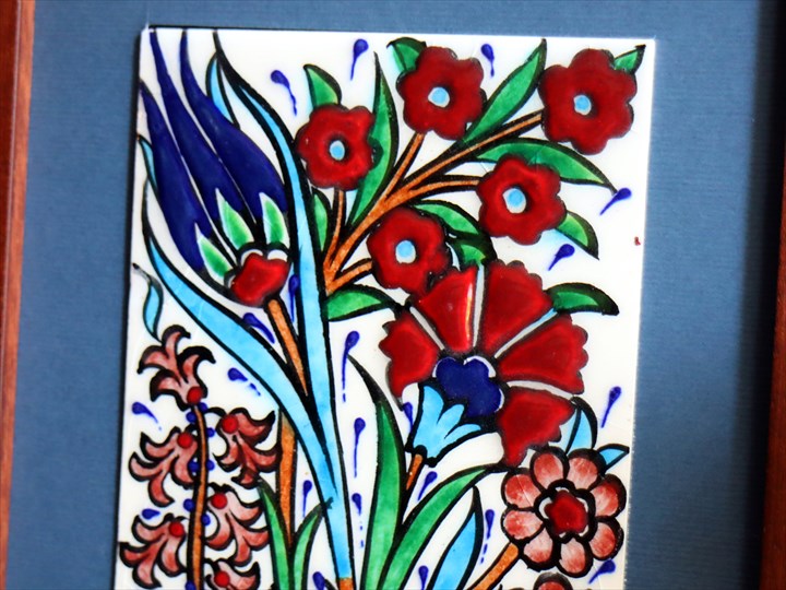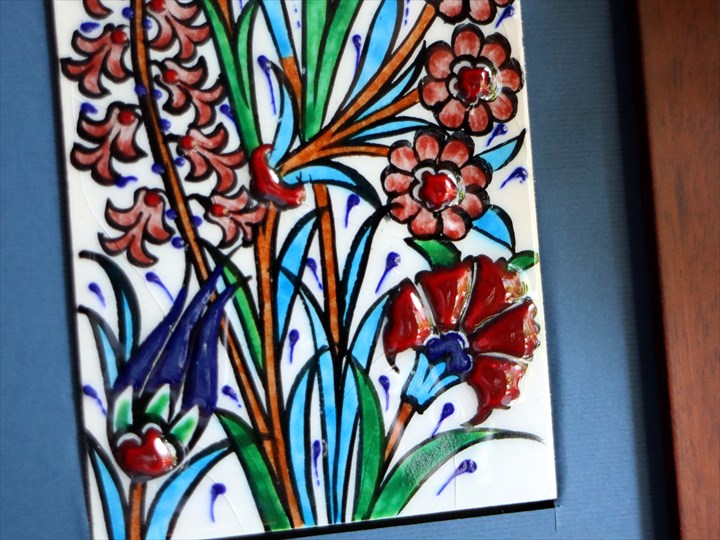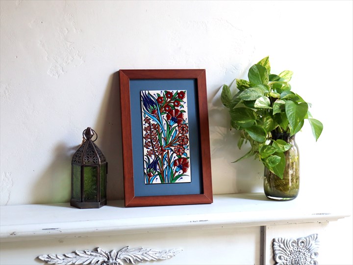 【15%OFF】手書きタイル トルコ陶器 ミニタイル1枚額 H29×W19×D1.5cm チューリップ&カーネーション Turkish Hand Paint Tile