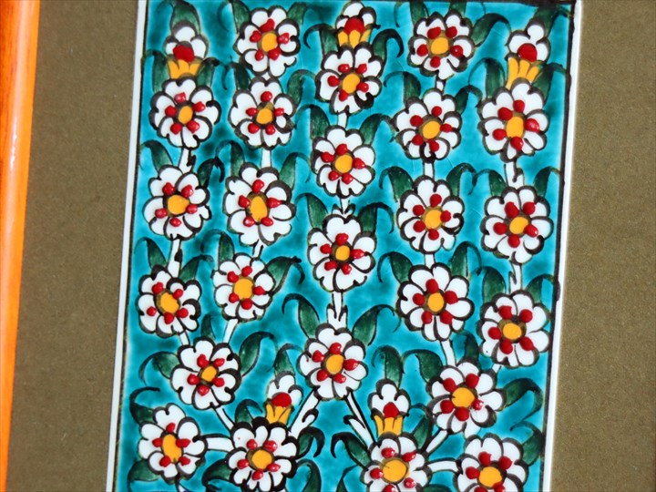 【15%OFF】手書きタイル トルコ陶器 ミニタイル1枚額 H29.5×W19.5×D1.5cm プラムツリー Turkish Hand Paint Tile