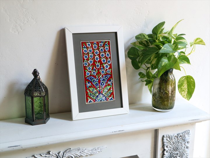 【15%OFF】手書きタイル トルコ陶器 ミニタイル1枚額 H29×W19×D1.5cm プラムツリー Turkish Hand Paint Tile