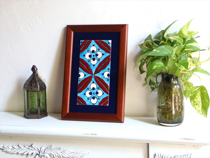 【15%OFF】手書きタイル トルコ陶器 ミニタイル1枚額 H29.5×W19.5×D1.5cm チントマニ Turkish Hand Paint Tile