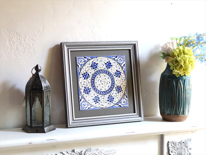 Key:タイル トルコ 陶器 イズニック キュタフヤ 手書き ハンドメイド パネル 額 インテリア 壁 ディスプレイ Iznik Tile Turkish Hand paint Handmade Ottoman Blue Mosque Kutahya