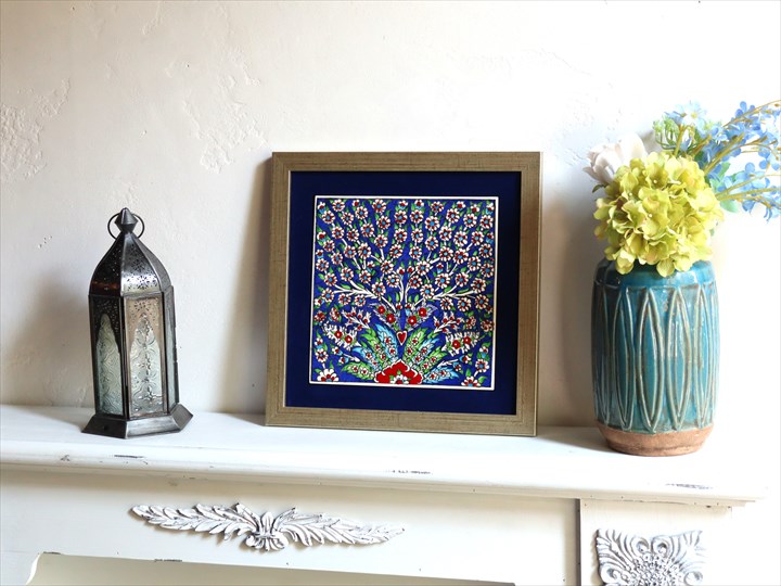Key:タイル トルコ 陶器 イズニック キュタフヤ 手書き ハンドメイド パネル 額 インテリア 壁 ディスプレイ Iznik Tile Turkish Hand paint Handmade Ottoman Blue Mosque Kutahya