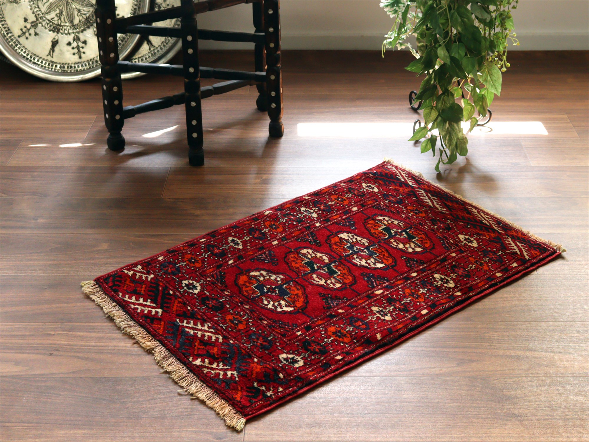 - トライバルラグ バルーチ78×51cm 幾何学模様 レッド