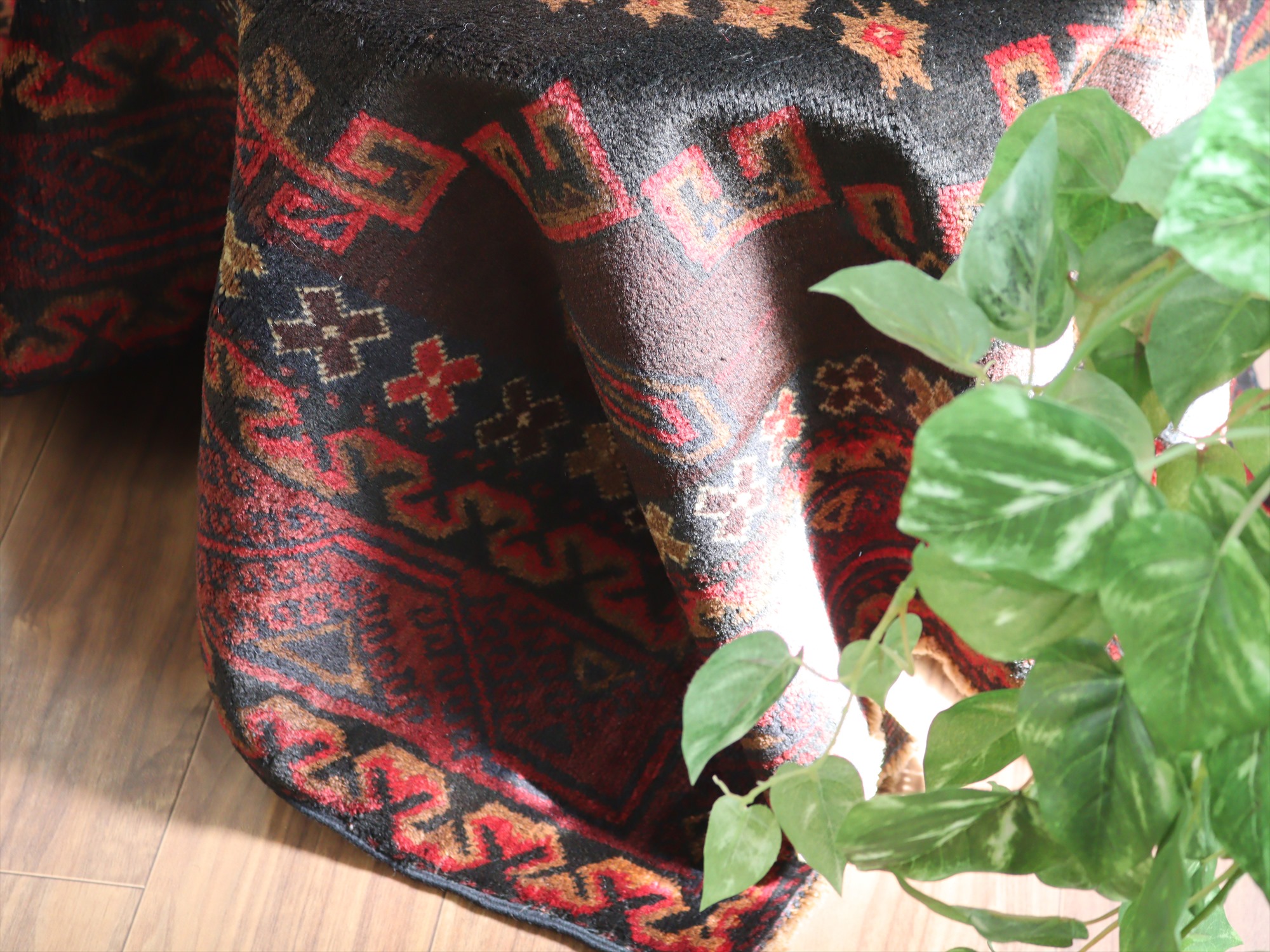 ベースを含めたラグの厚みは6mm程で、パイルはすっきりと刈られています。また、毛足はツヤがありマットな質感です。