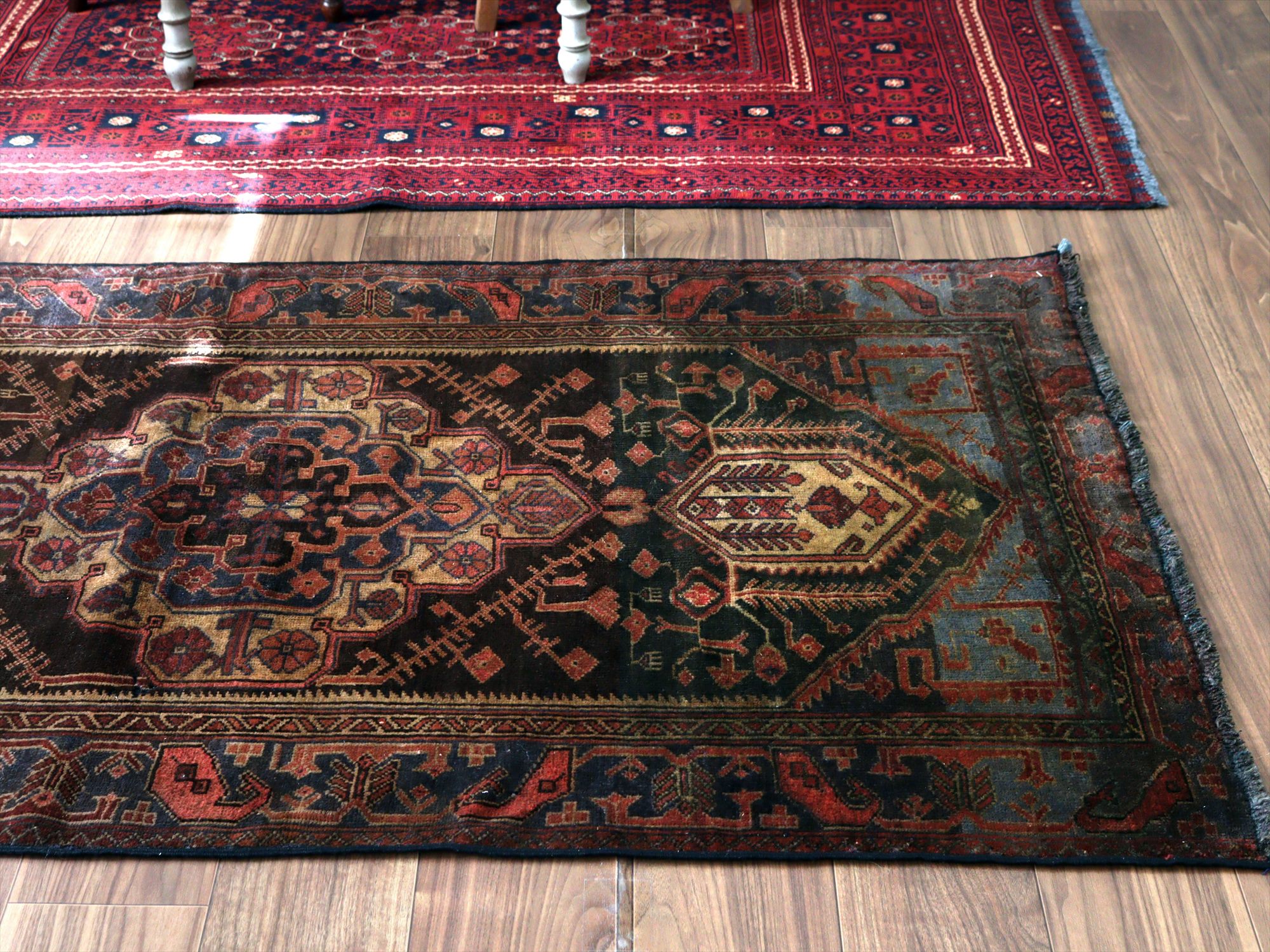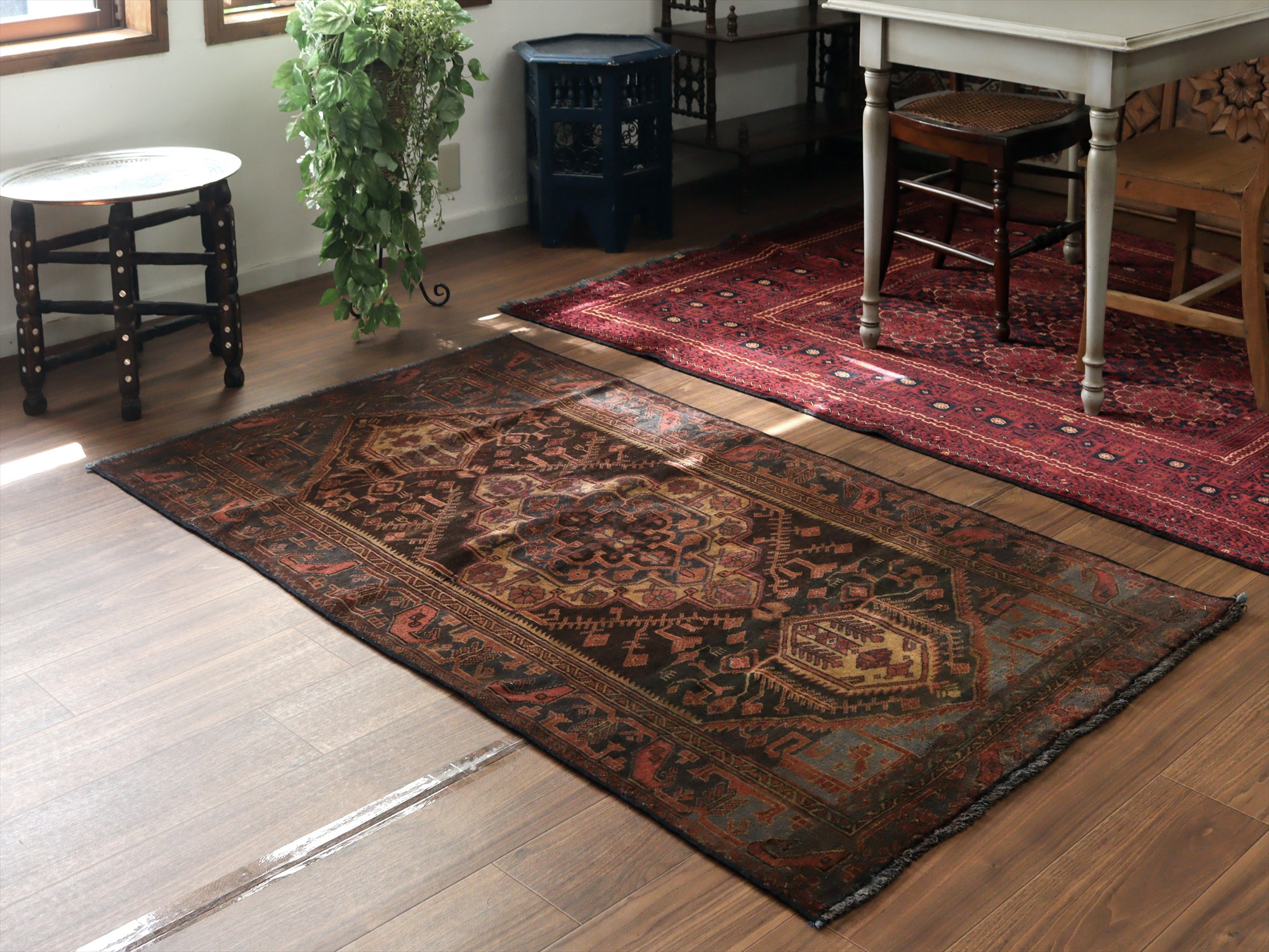 トライバルラグ バルーチ168×97cm 小花とメダリオン ダークブラウン
