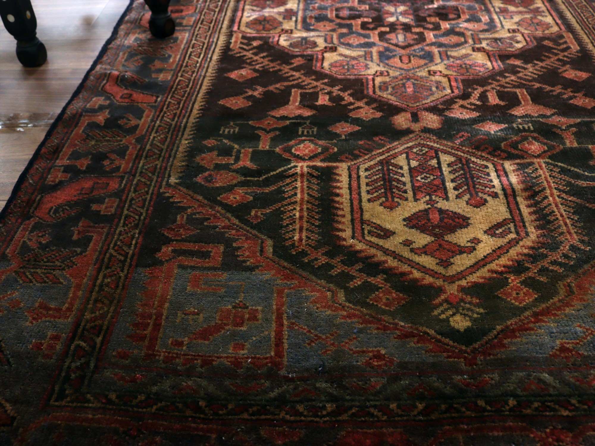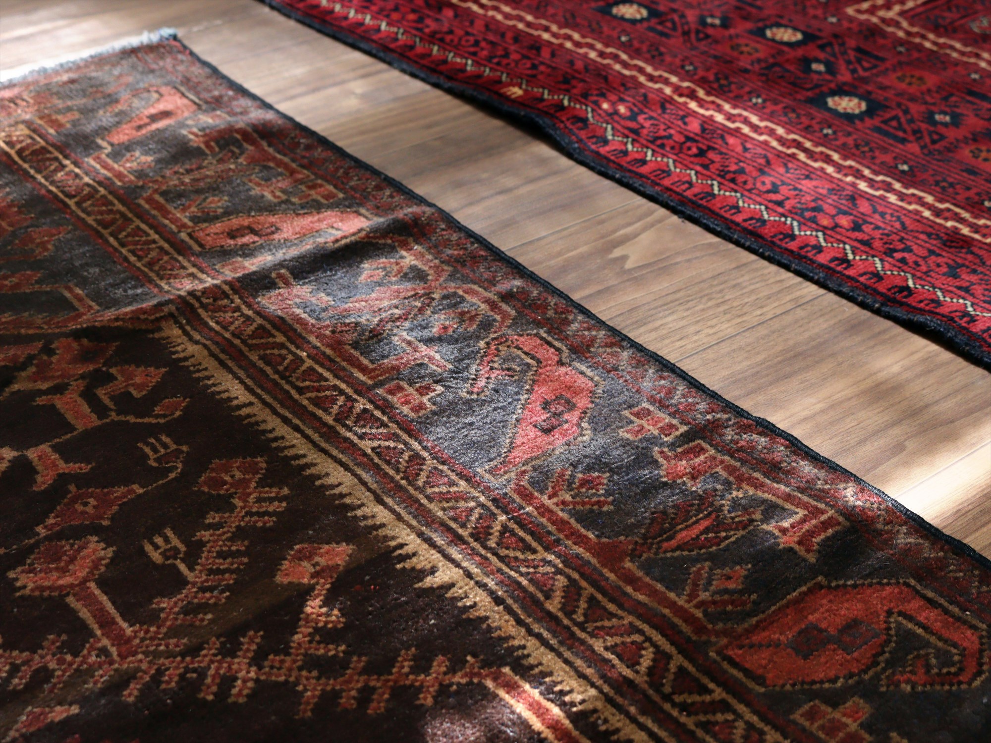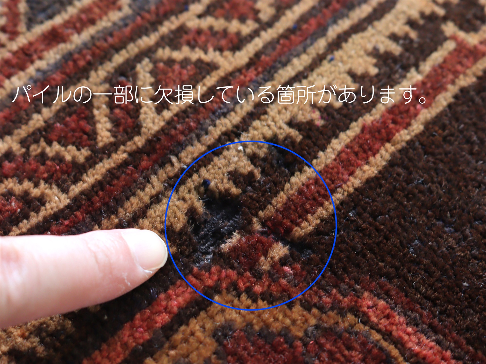 パイルの一部に欠損している箇所があります。ベースを含めたラグの厚みは7mm程で、パイルはすっきりと刈られています。