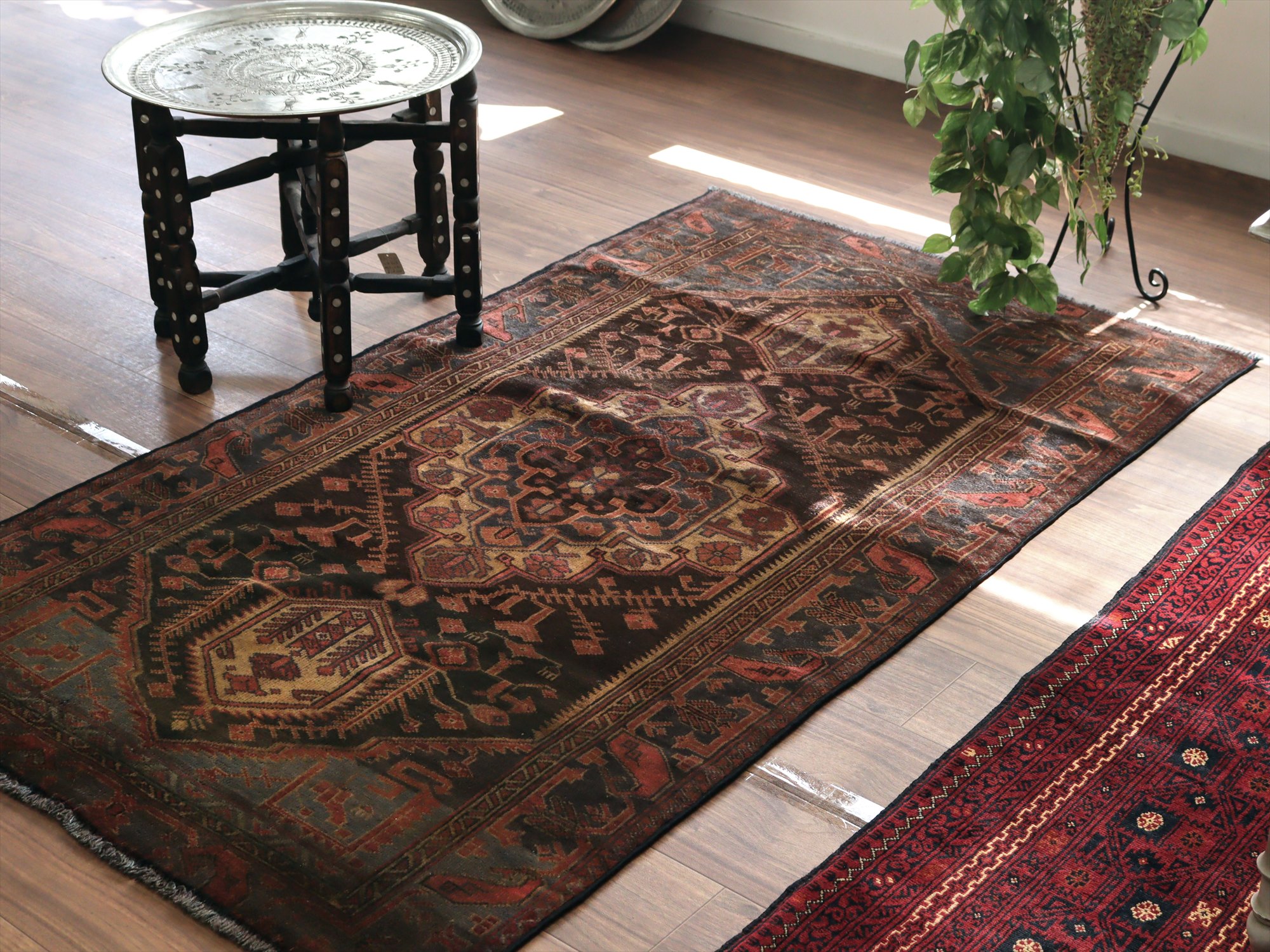 - トライバルラグ バルーチ168×97cm 小花とメダリオン ダークブラウン