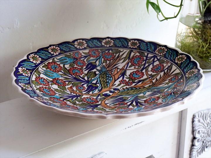トルコ 手書き絵皿 直径31cm 飾り絵皿 孔雀とフラワー ミュージアムピース オットマンクラシック Turkish Hand Paint Plate
