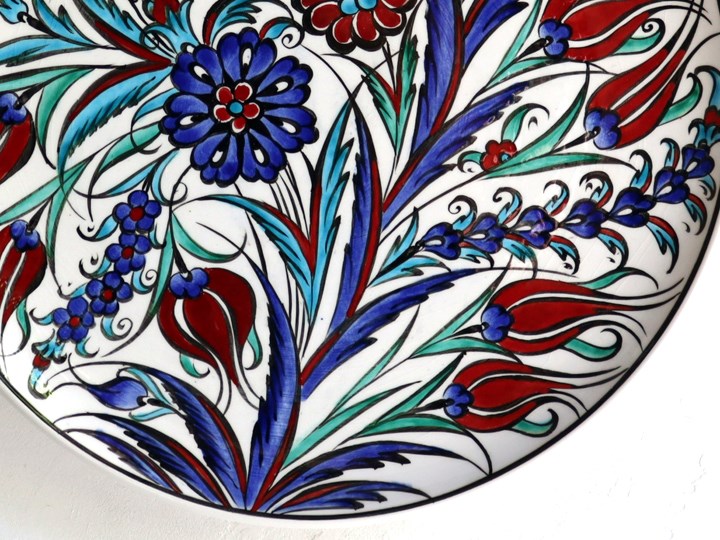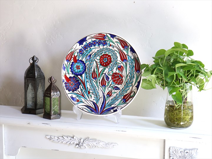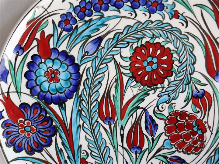 トルコの陶器産業の中心地・キュタフヤで作られています。16世紀末に完成されたとされる、オスマントルコ独特の表現で描かれたチューリップとカーネーションが描かれています。