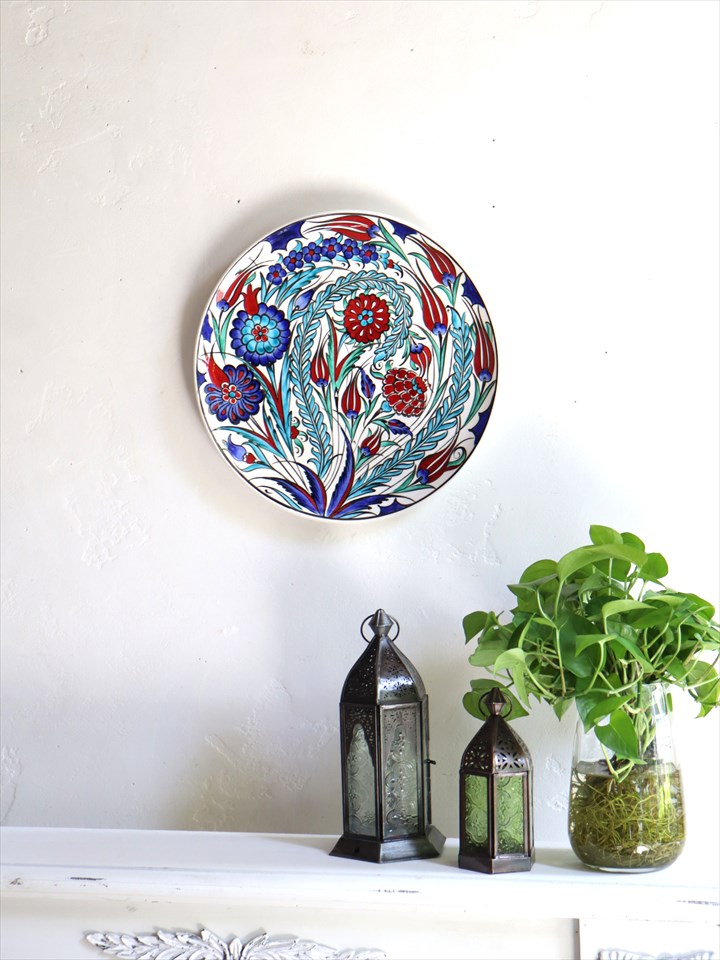 Key:置物 焼き物 陶器 皿 絵皿 飾り皿 プレート トルコ グランドバザール お土産 手書き 絵付け オリエンタル シルクロード Turkish Ceramic Iznik Ottoman Style Istanbul