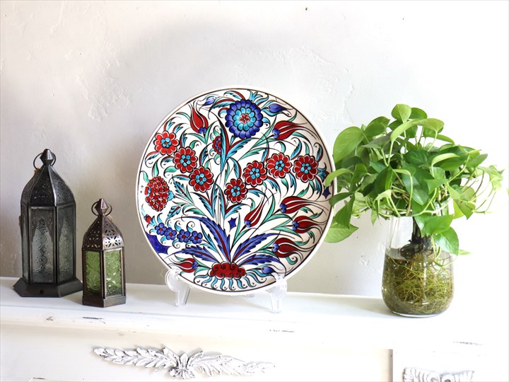 トルコの陶器産業の中心地・キュタフヤで作られています。16世紀末に完成されたとされる、オスマントルコ独特の表現で描かれたチューリップとカーネーションが描かれています。