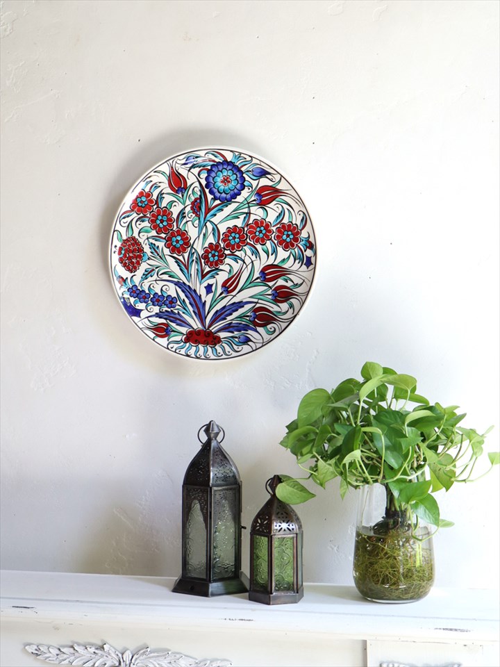 Key:置物 焼き物 陶器 皿 絵皿 飾り皿 プレート トルコ グランドバザール お土産 手書き 絵付け オリエンタル シルクロード Turkish Ceramic Iznik Ottoman Style Istanbul