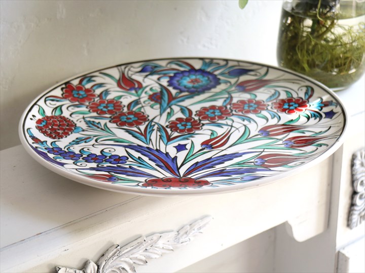 トルコ 手書き絵皿 直径32.5cm 飾り絵皿 チューリップとカーネーション ミュージアムピース オットマンクラシック Turkish Hand Paint Plate
