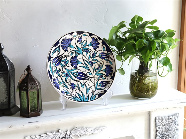 Key:置物 焼き物 陶器 皿 絵皿 飾り皿 プレート トルコ グランドバザール お土産 手書き 絵付け オリエンタル シルクロード Turkish Ceramic Iznik Ottoman Style Istanbul