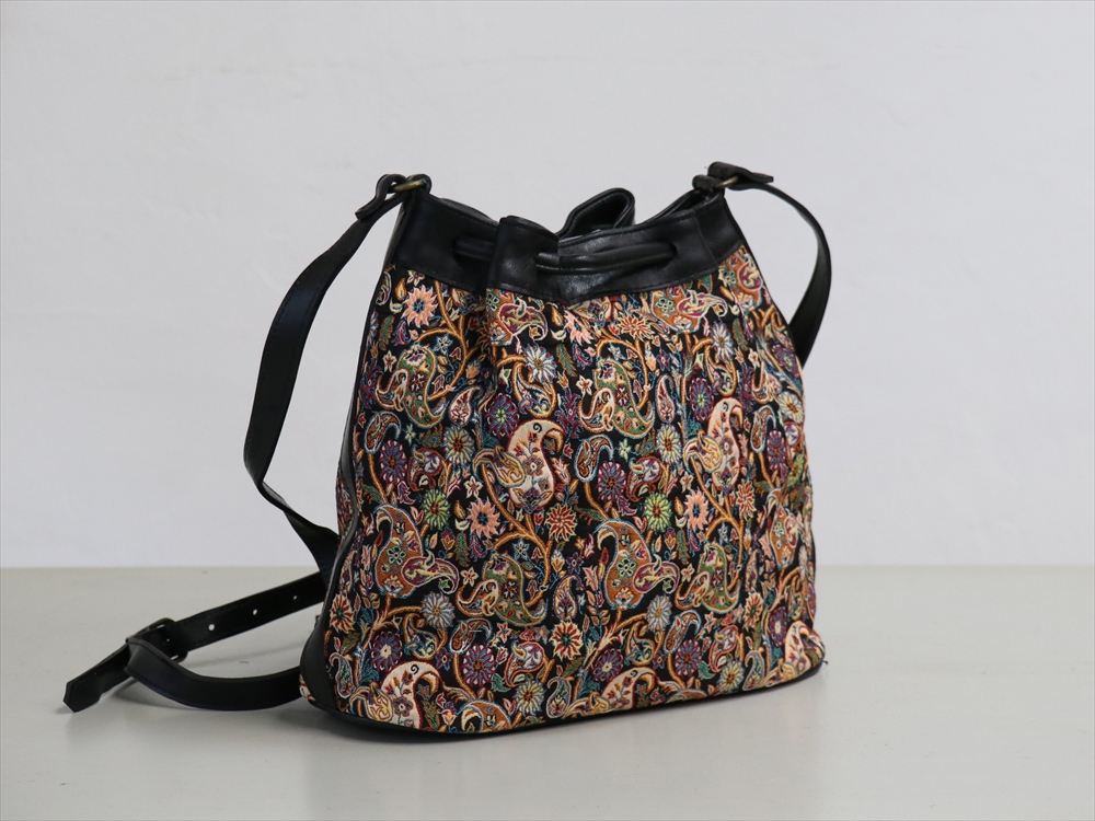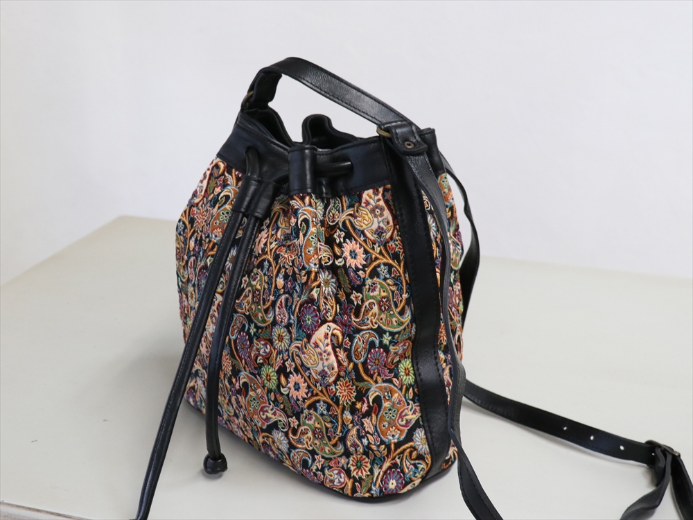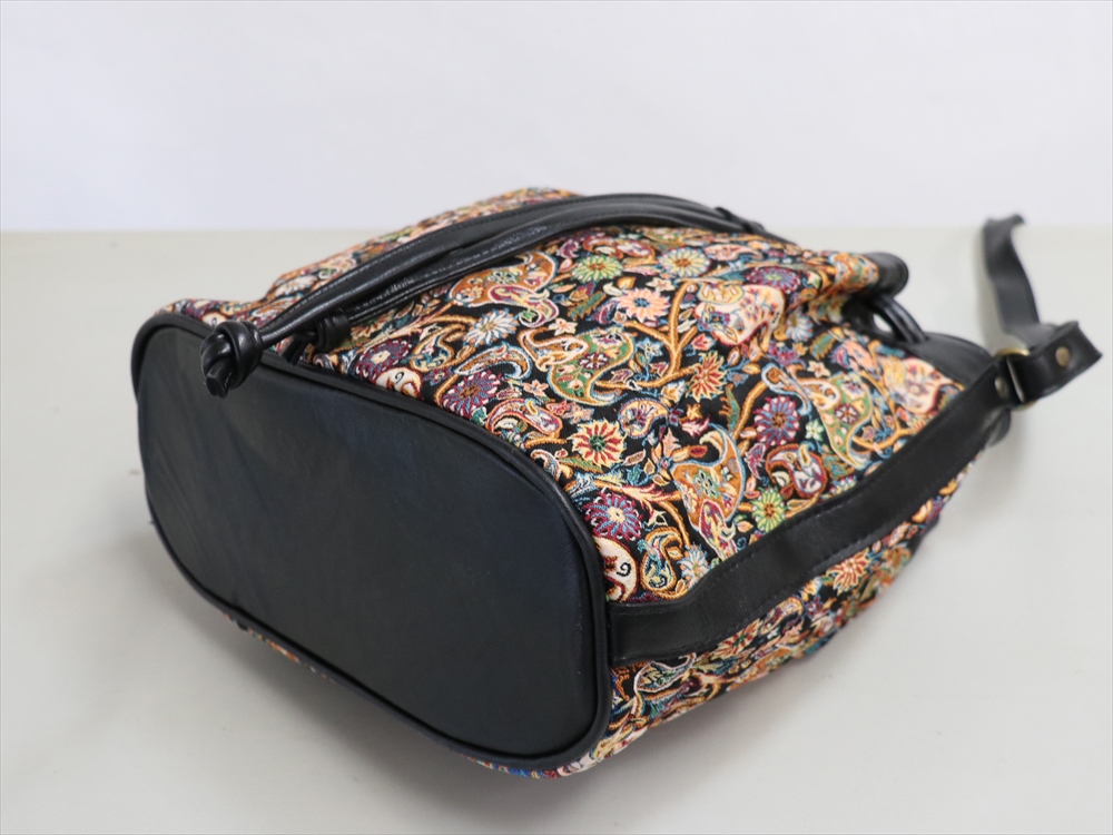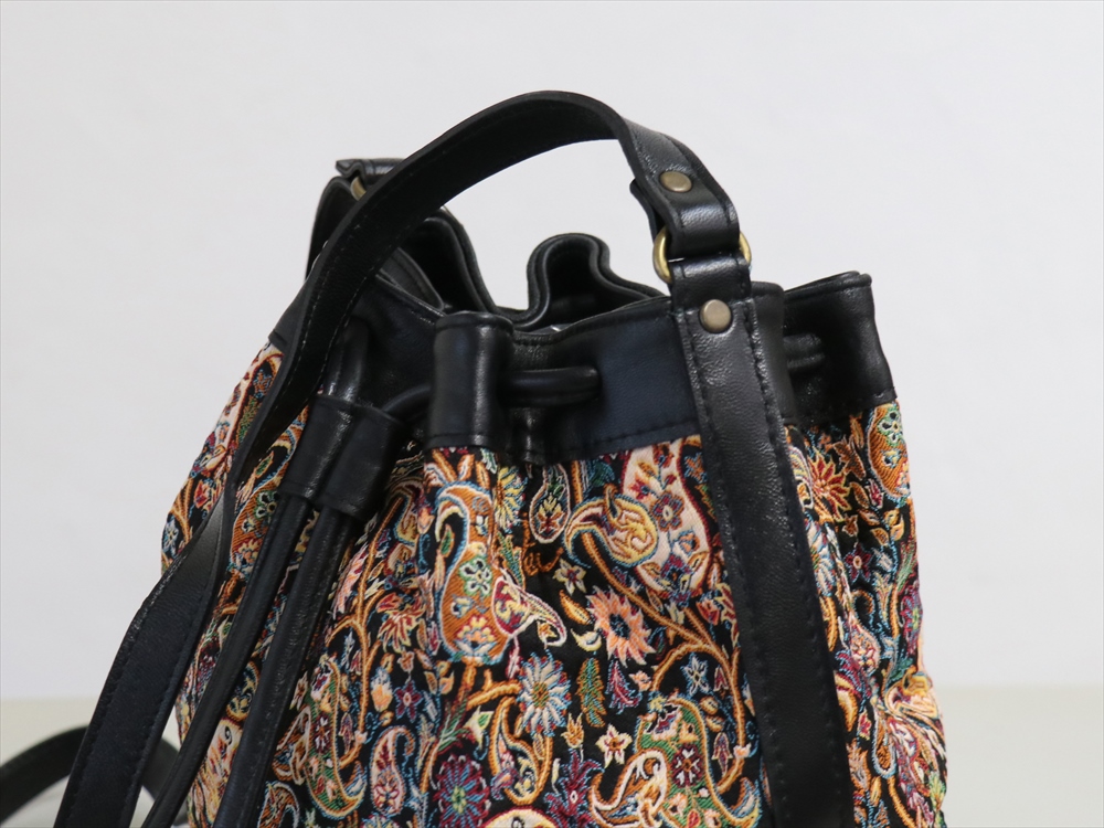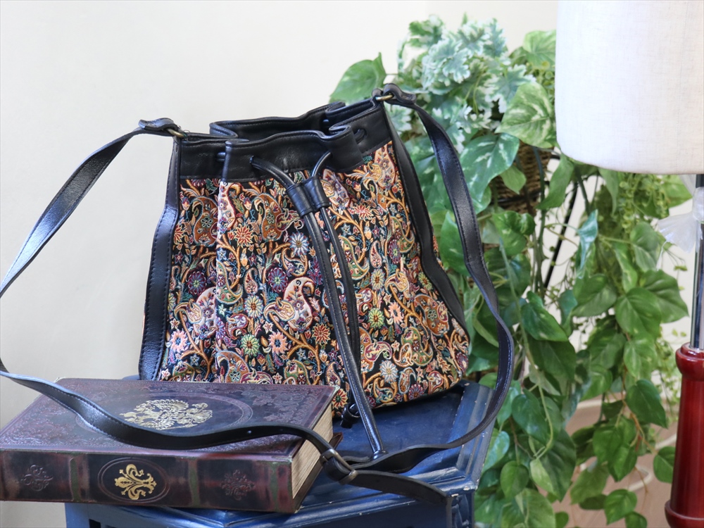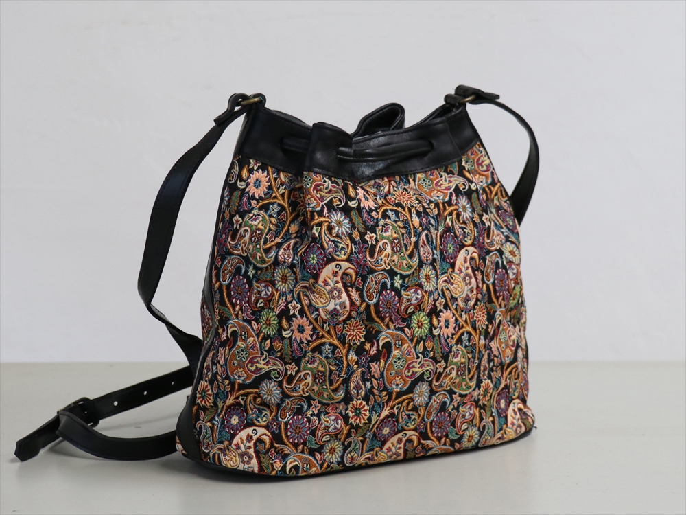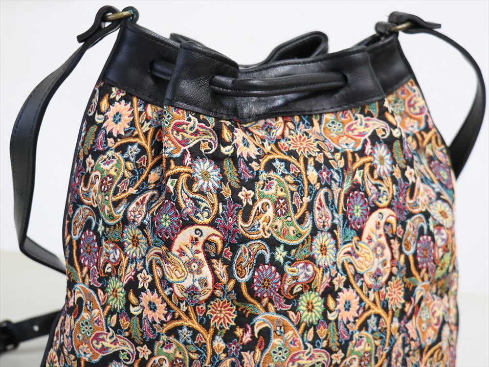 テルメ ペイズリーの巾着型ショルダーバッグ黒 ブラック
