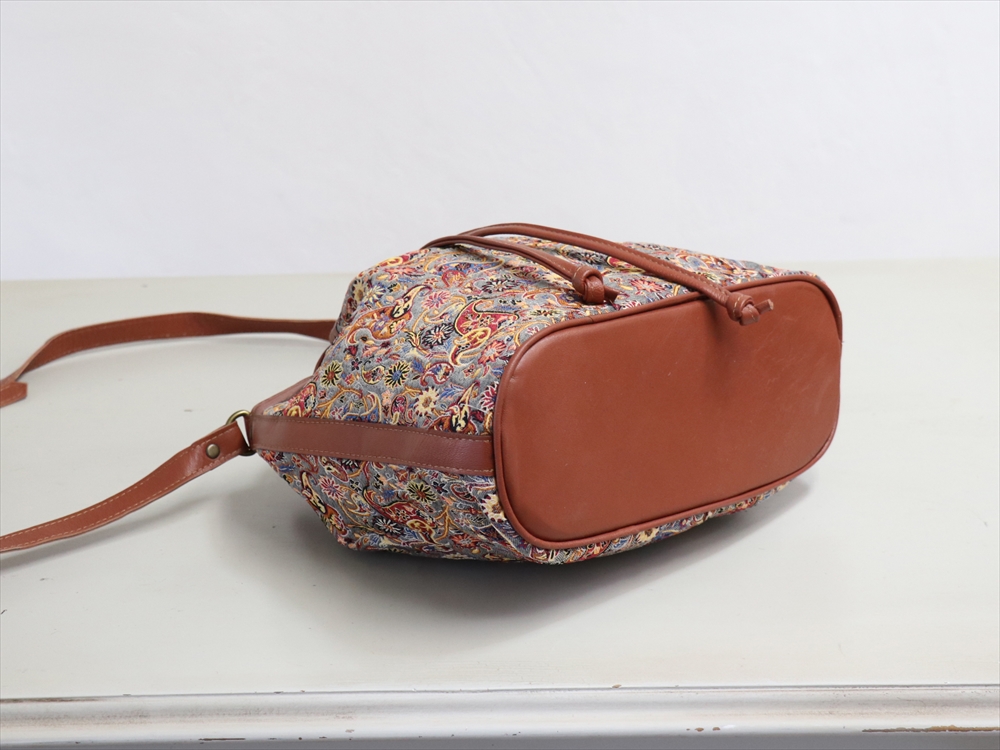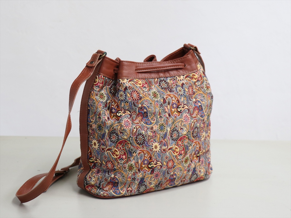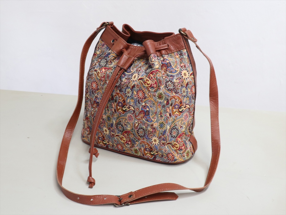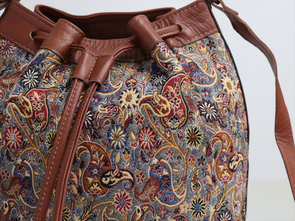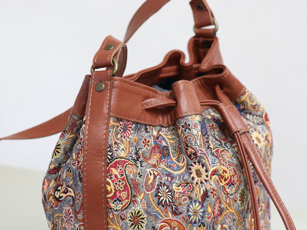 テルメ ペイズリーの巾着型ショルダーバッググレー /革の色ブラウン