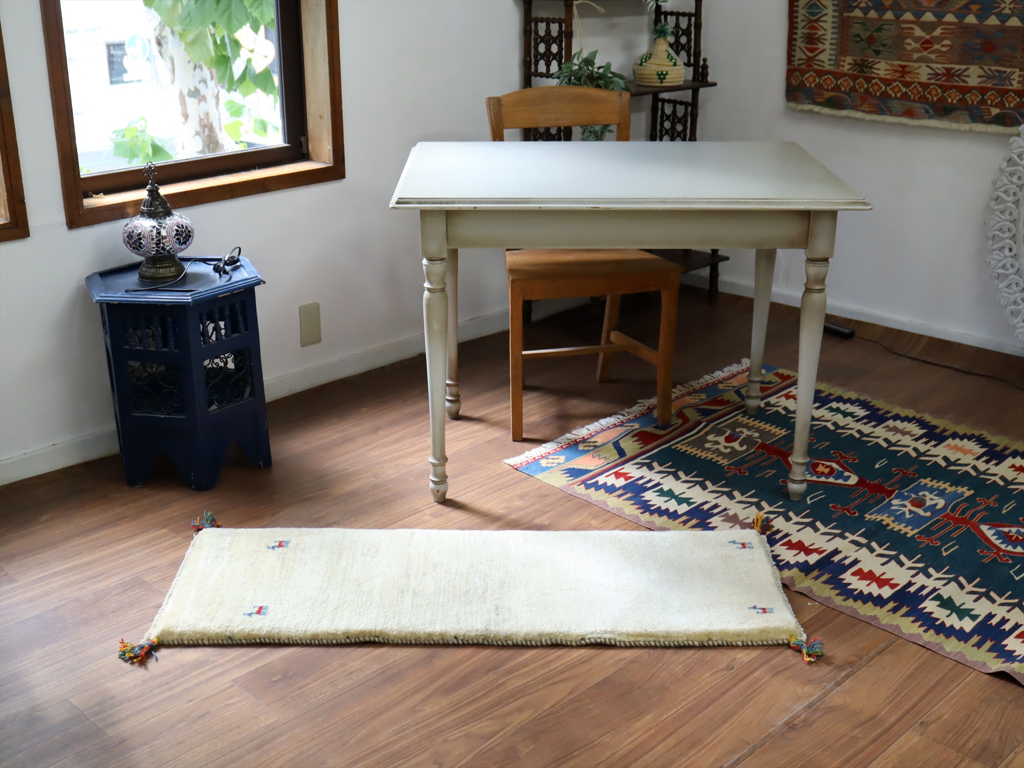 Key:ギャベ, ラグ, 手織り絨毯, 部族絨毯, 草木染, カシュカイ族, ウール製, キッチンマット, ベッドサイド, アイボリー, 東京,中野区, ガラタバザール, Gabbeh, Tribal Rug, Hand knotted, wool, Natural dye, Shiraz, Fars, Quashkai