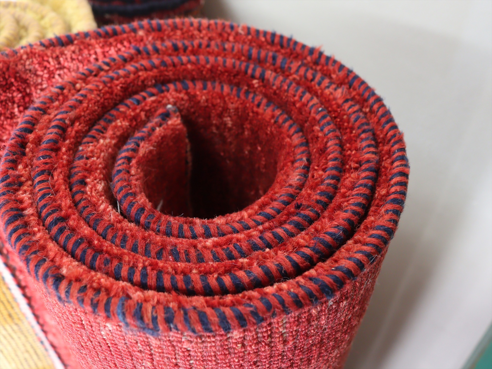 特に仕上げの行程は丁寧で、上下の縦糸をキリムを織り足して巻き込んでからロックしていたり、クシで丁寧にかき出してあるため遊び毛もほとんど出てこないなど、とても手のかかった仕上げです。