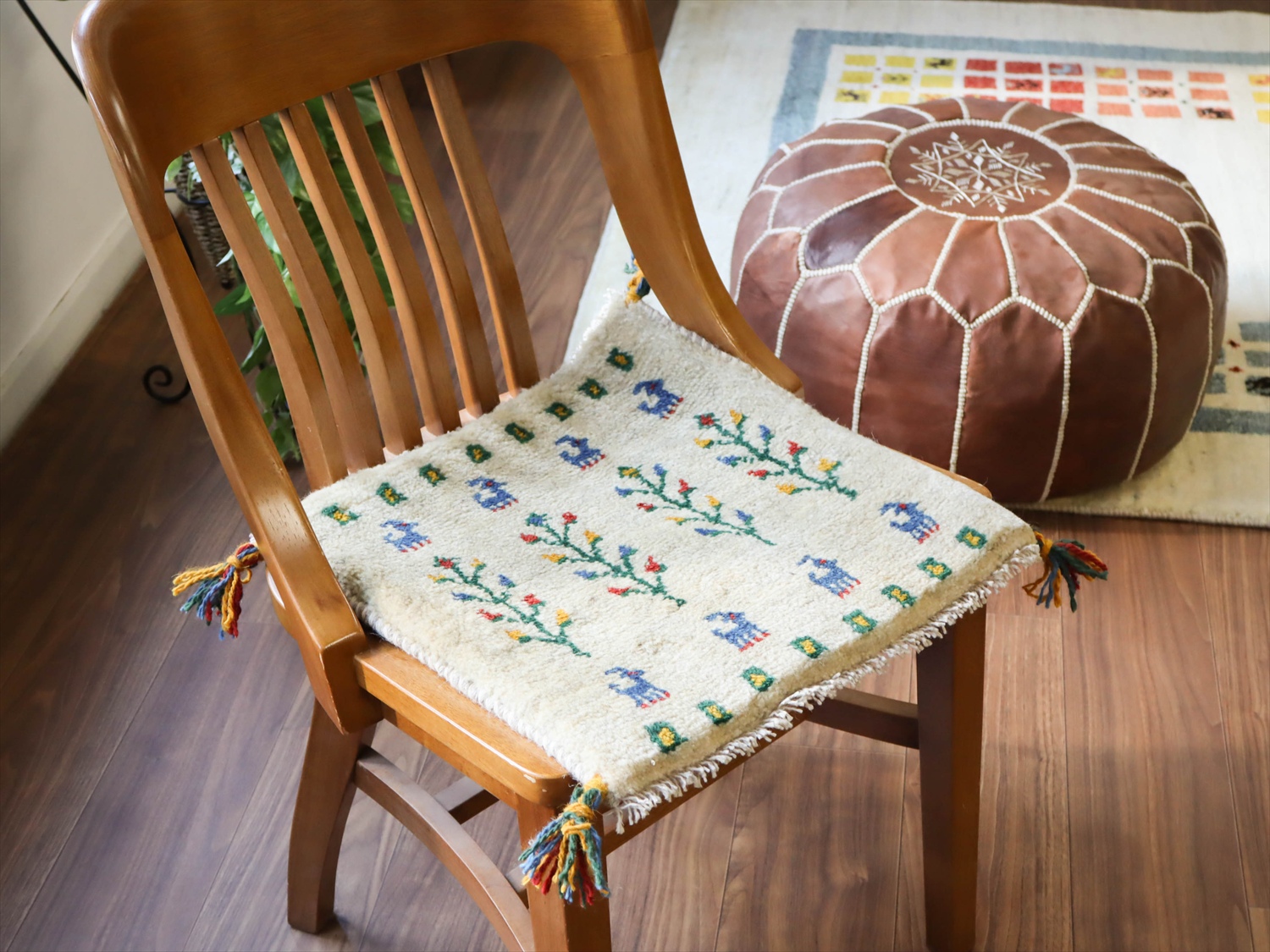 - ギャッベ イラン産手織り 座布団サイズ 42x41cm ナチュラルアイボリー
