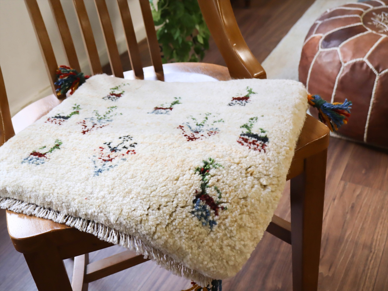 - ギャッベ イラン産手織り 座布団サイズ 37x40cm ナチュラルアイボリー