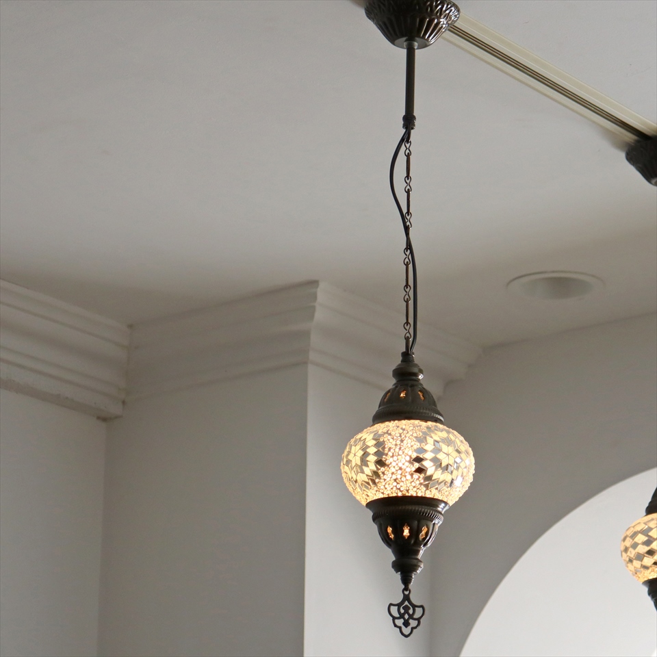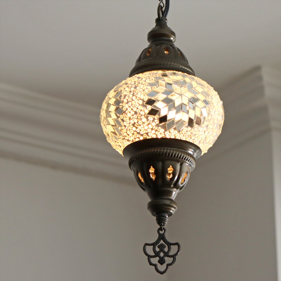 - トルコランプ モザイクランプ 直径13cm 全高67cm ホワイト ペンダントライト