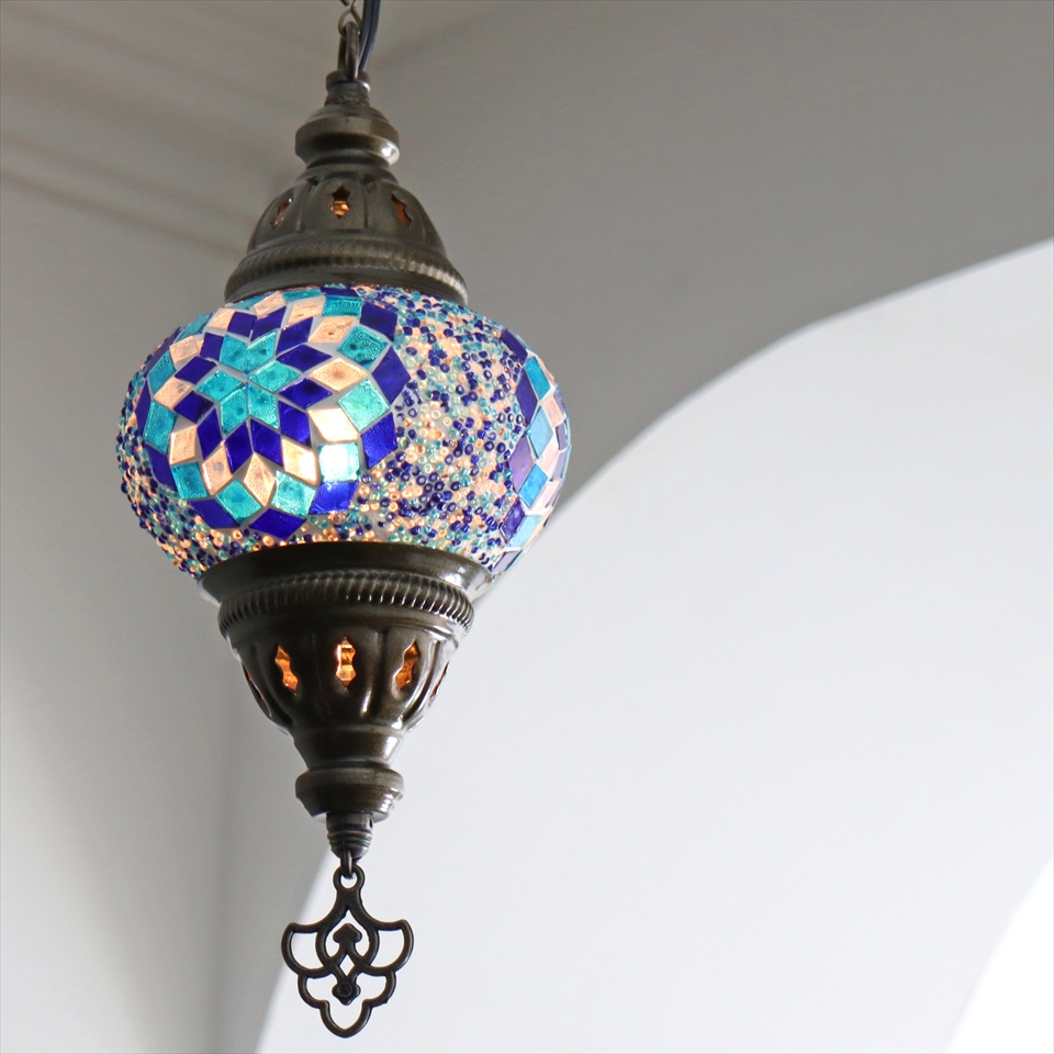 - トルコランプ モザイクランプ 直径13cm 全高67cm ブルー ペンダントライト