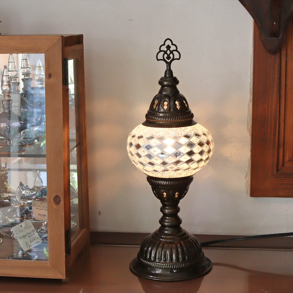 トルコランプ モザイクテーブルランプ 直径13cm 全高36cm ホワイト