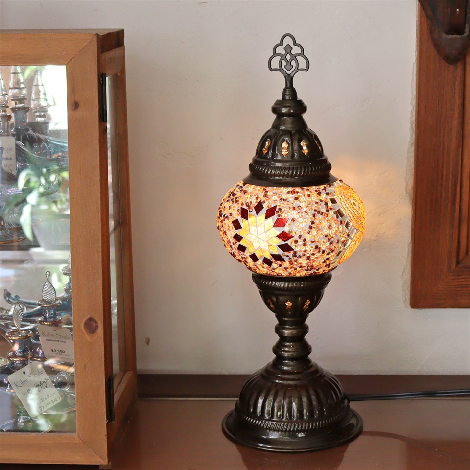 - トルコランプ モザイクテーブルランプ 直径13cm 全高36cm アンバー