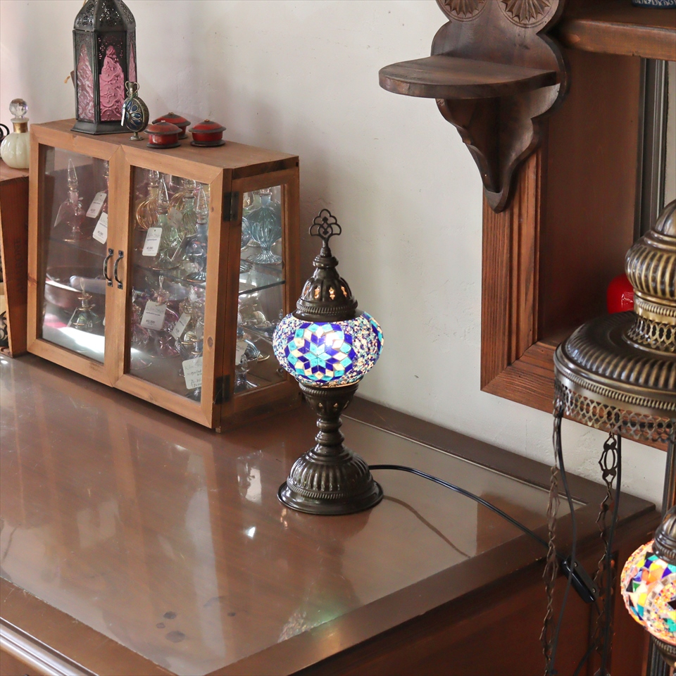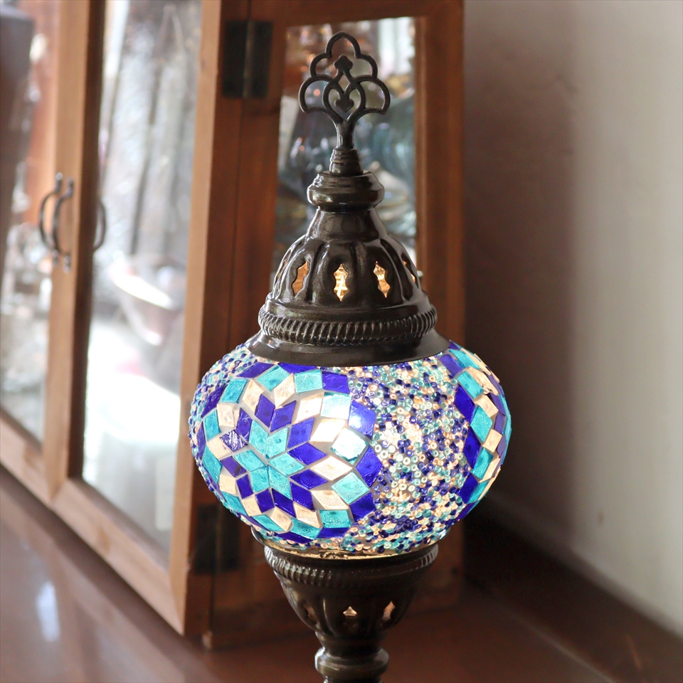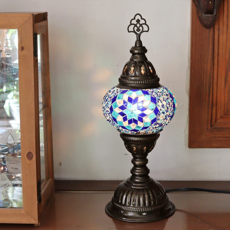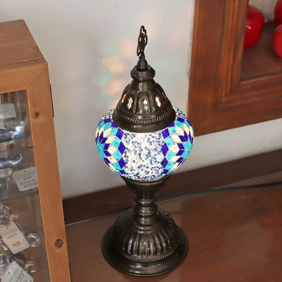 - トルコランプ モザイクテーブルランプ 直径13cm 全高36cm ブルー
