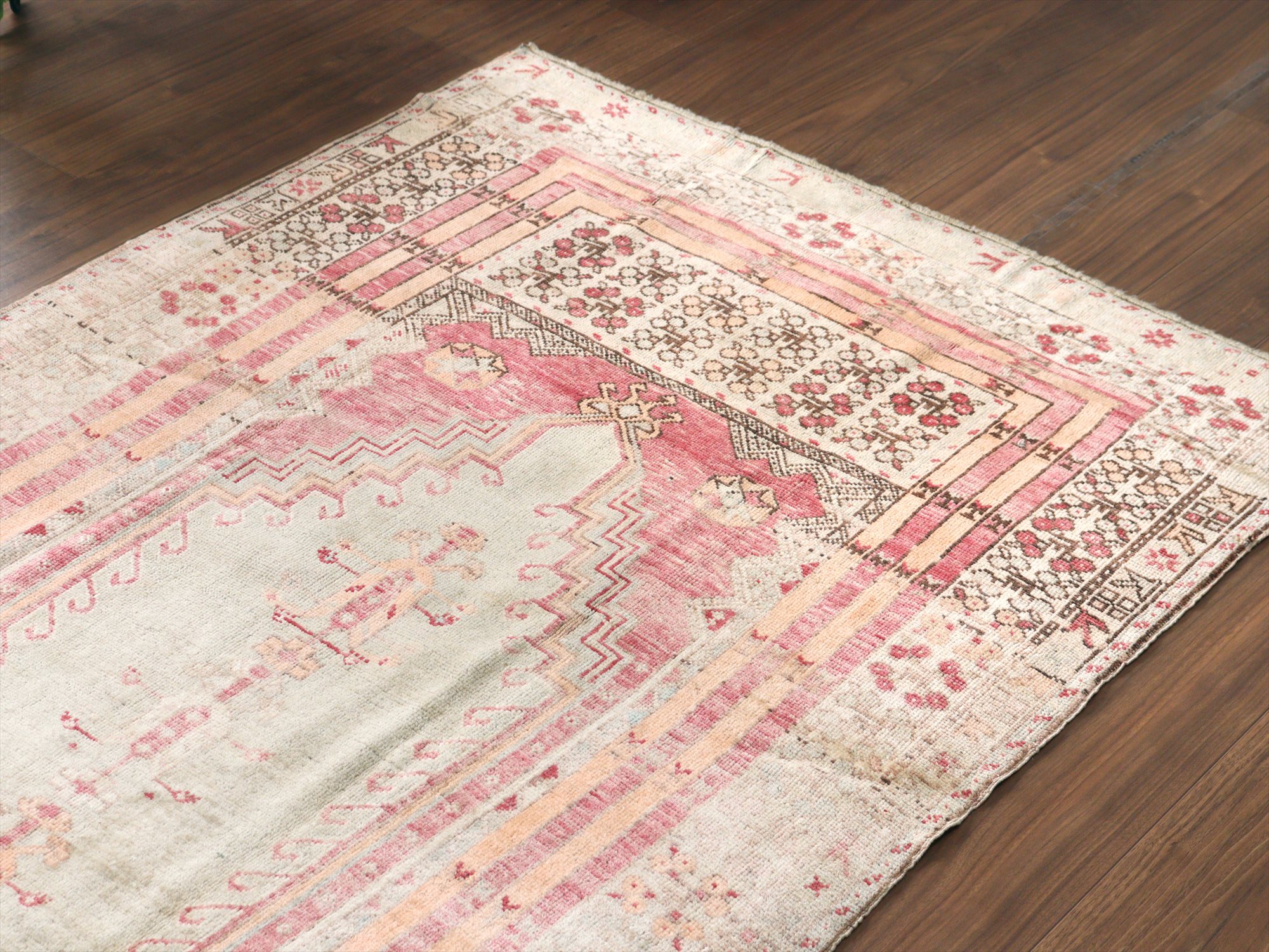 - トルコ絨毯 シワス213×124cm 色褪せたミフラープ