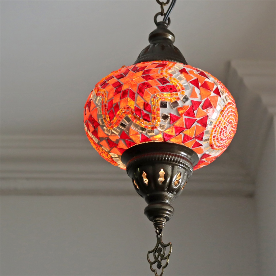 トルコランプ モザイクランプ ペンダントランプ 直径16cm オレンジ