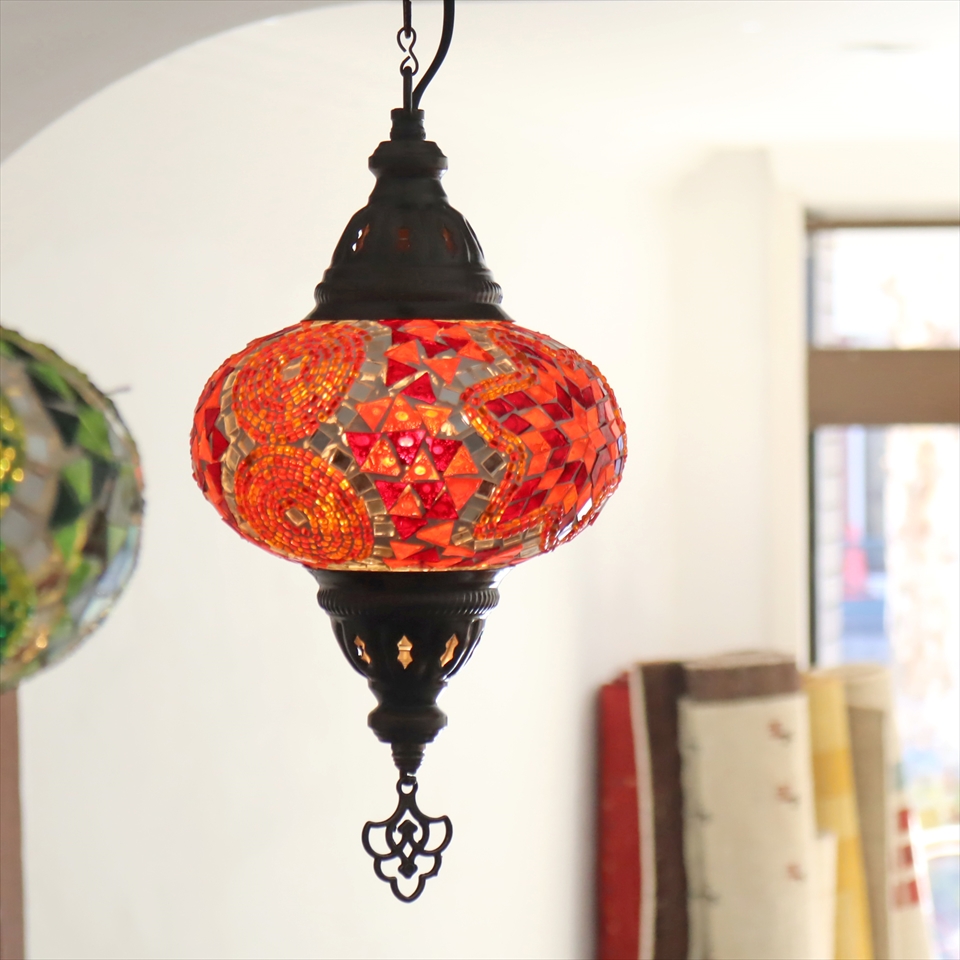 - トルコランプ モザイクランプ ペンダントランプ 直径16cm オレンジ