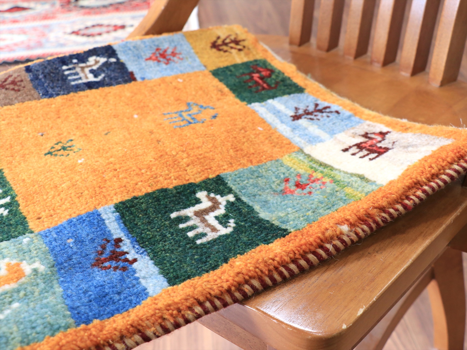 ギャッベ ノマド ミニギャッベ 45x43cm オレンジ 動物と植物