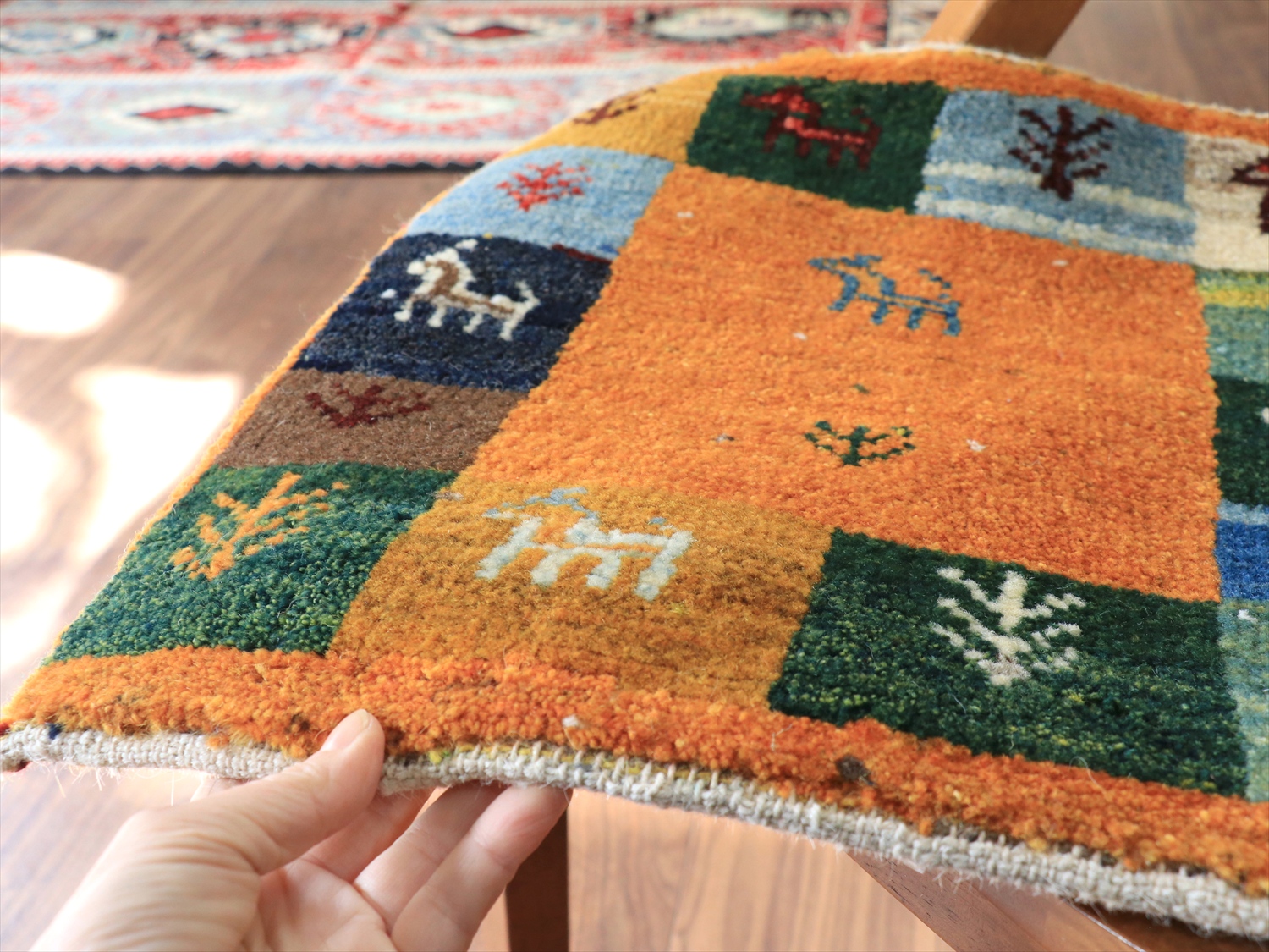 Key:ラグ, カーペット, rug, carpet, Nomad, 遊牧民, ギャッベ, ギャベ, 手織り, hand notted, The Tree OF Life, 座布団ギャッベ, イラン直輸入, カシュカイ, ウール100%, 一点もの, 現品販売, Shiraz, Area Rug, Handmade, 東京, 中野区, 実店舗, ガラタバザール