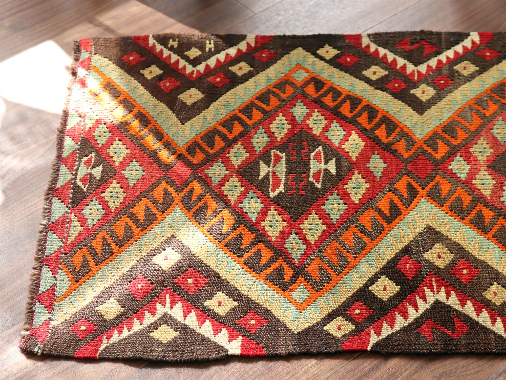 - オールドキリム シワス90×64cm ヤストゥク 連なるドラゴン ブラウン