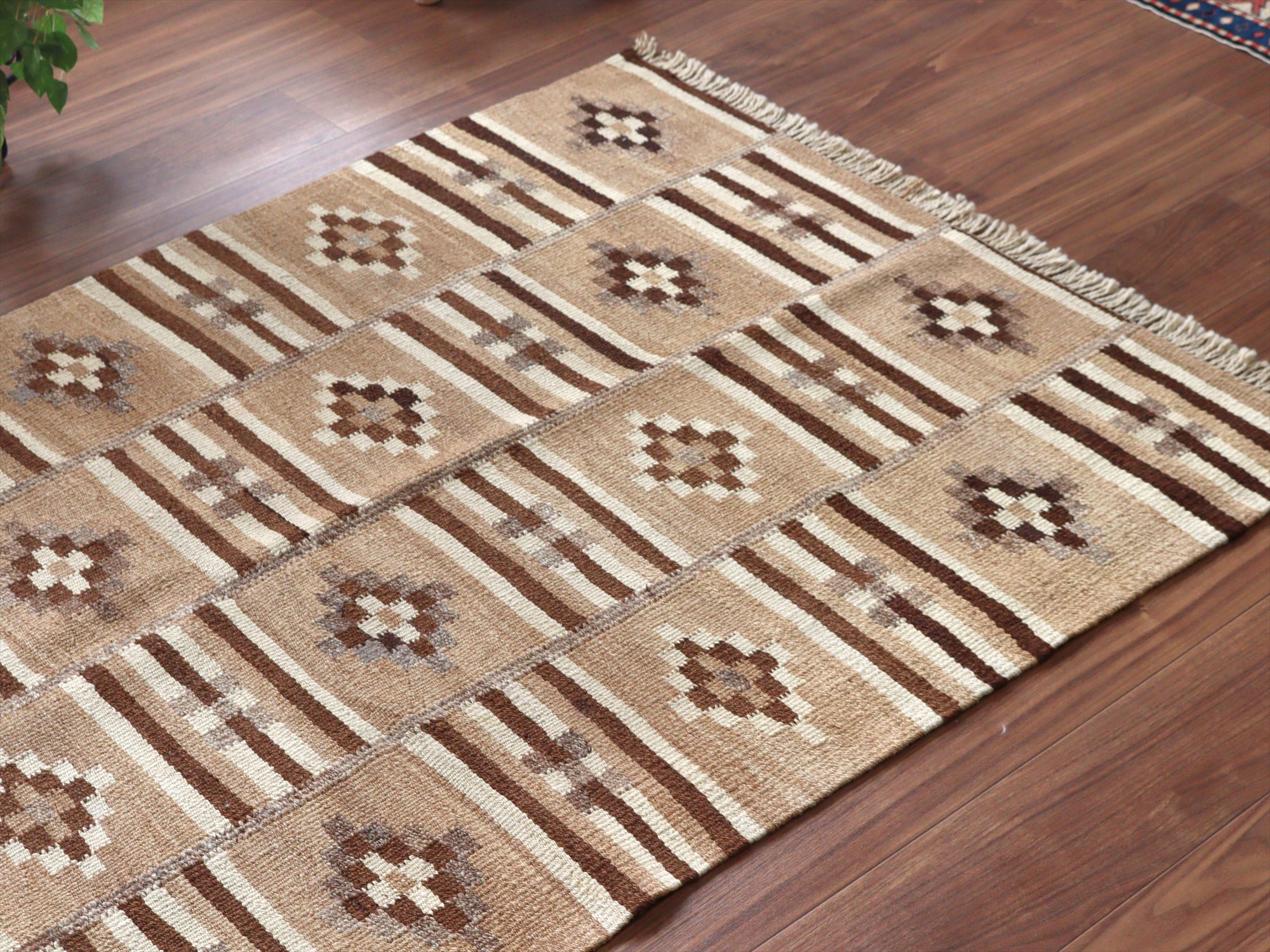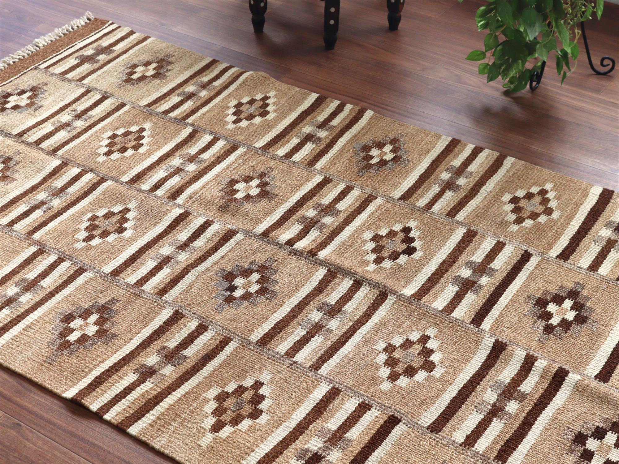 6. トルコの手織りキリム カルス181×107cm 幾何学モチーフ ブラウン