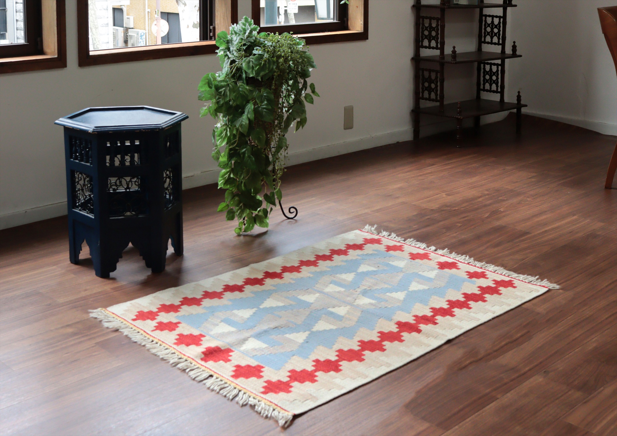 - カイセリ産手織りキリム 雄羊の角115×79cm ブルー&グレー トルコの手織りラグ