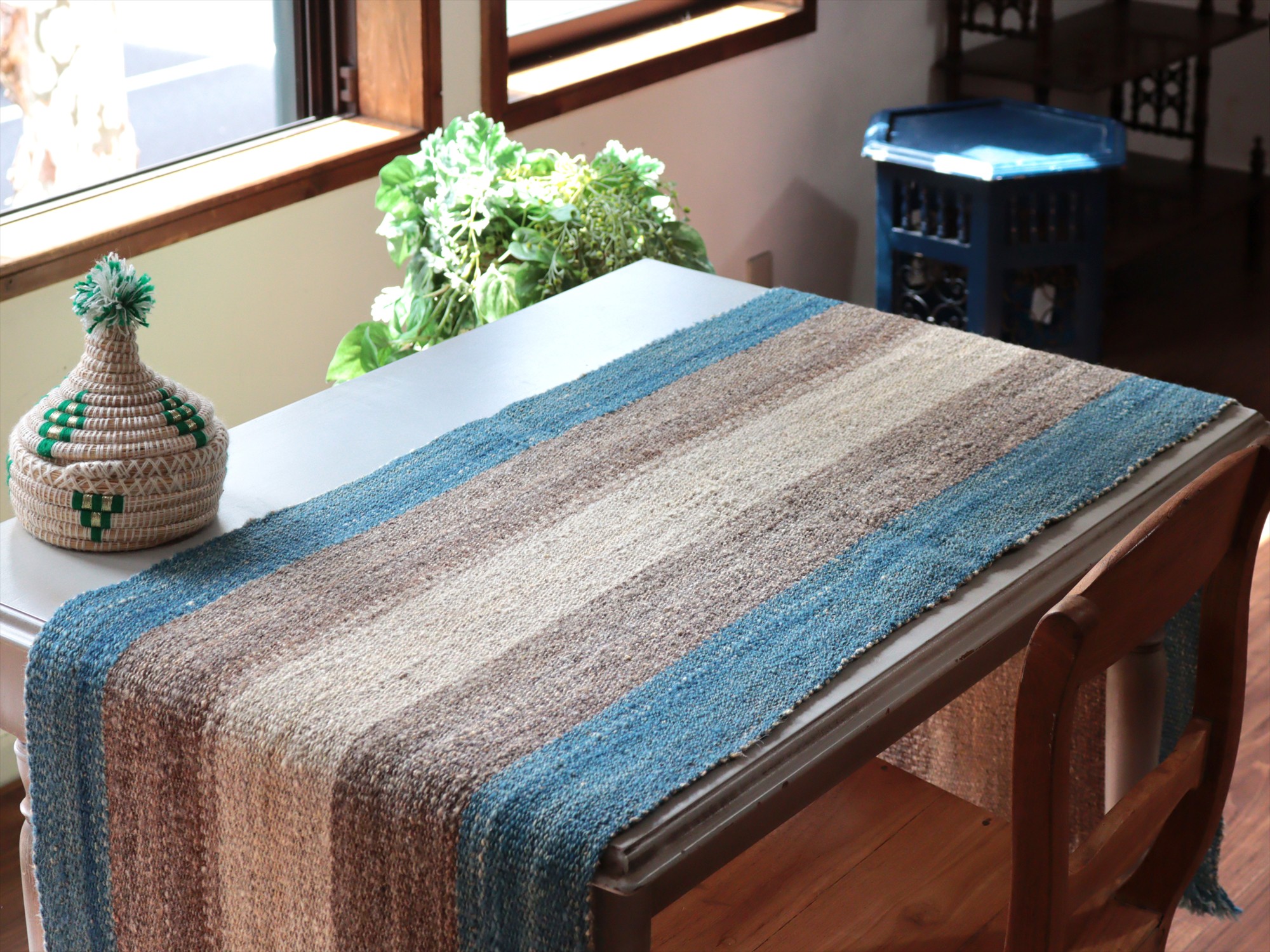 - トルコの手織りキリム カルス193×50cm ブルー&グレー ストライプ